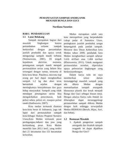 Contoh Karya Ilmiah Tentang Pemanfaatan Kembali Sampah - Pdf Pemberdayaan Masyarakat Dalam Pemanfaatan Daur Ulang Limbah Plastik - Pemanfaatan sampah sampah harus diprioritaskan sebelum terjadinya pencemaran.