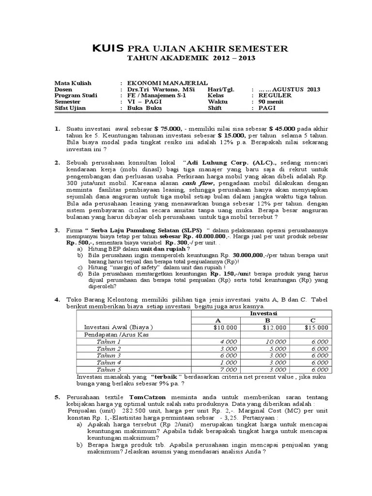 Standard annual standard gradient • menggunakan 2 perhitungan yaitu standar gradient dan standar annual 33. Kunci jawaban soal ulangan harian matematika kelas 4 sd bab 3 uang a. contoh soal dan jawaban present value ekonomi manajerial cara manual tahun 1 500 000 x 1 0 06 rp. Badan pendidikan dan pelatihan keuangan. contoh soal dan jawaban bunga sederhana dan bunga majemuk.